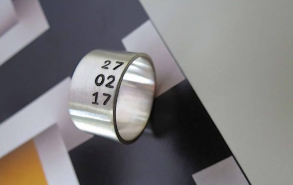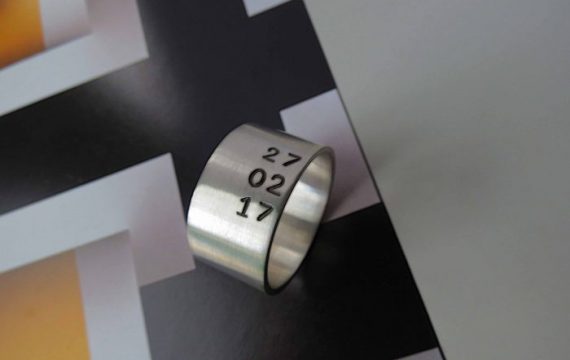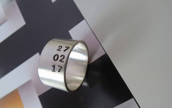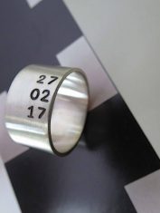 Argolla en plata ley 950 con grabado personalizado a mano envejecido, acabado mate. Tamaño: 10mm de ancho aprox.