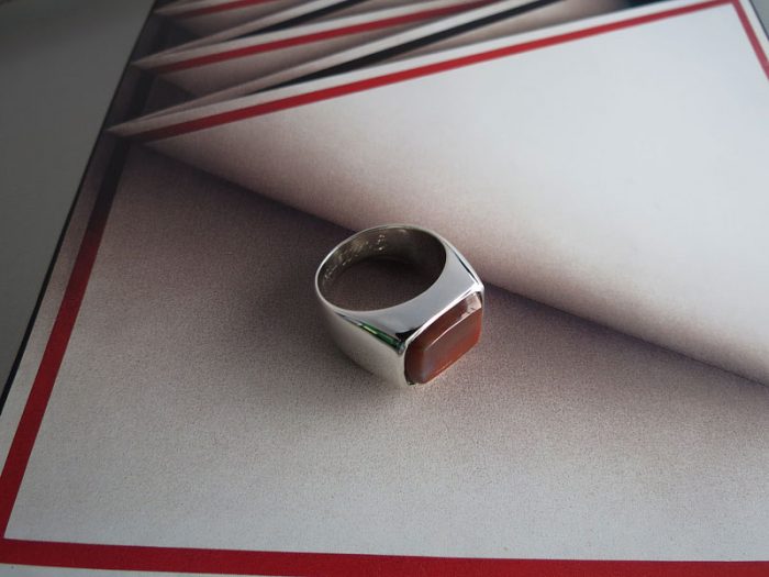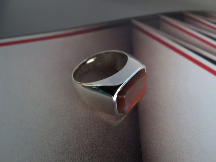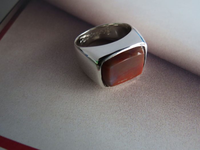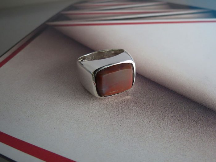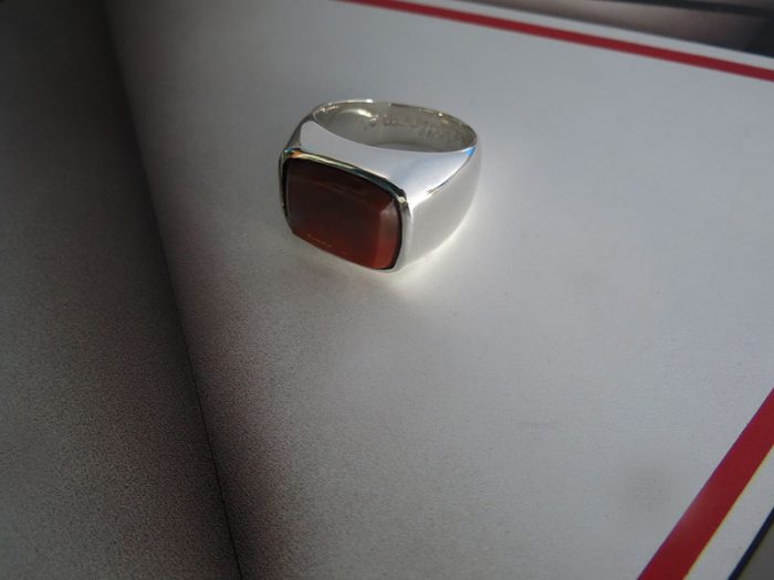 Anillo macizo en plata ley 950 con Jaspe Sardo de 16*12mm aprox., tallada y engastada.