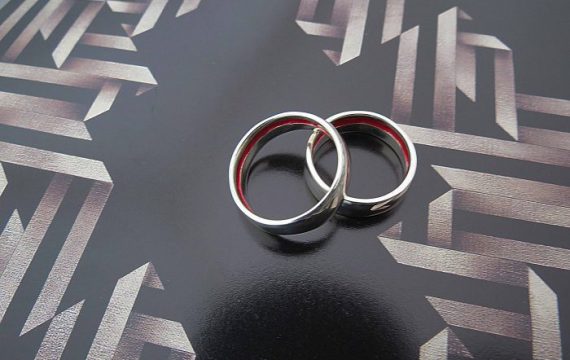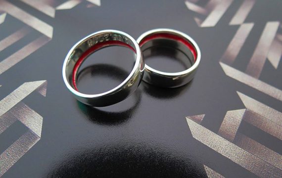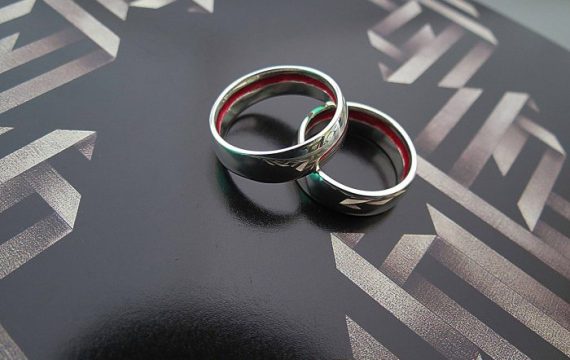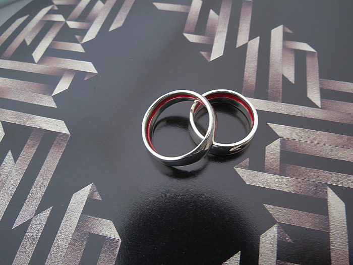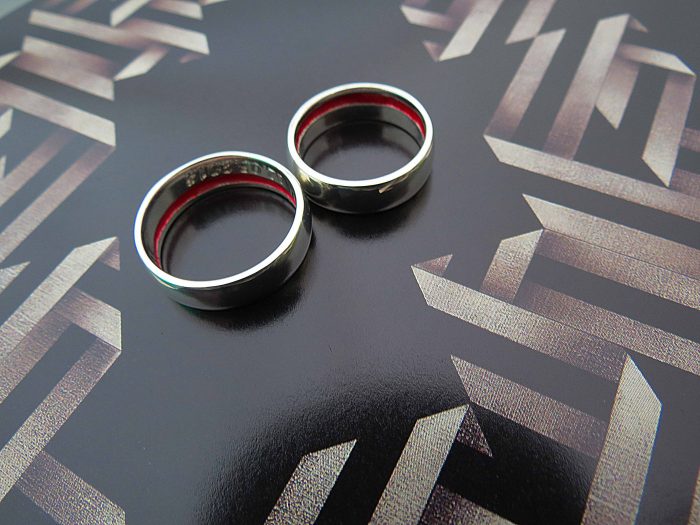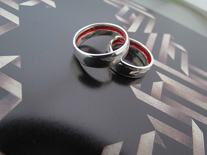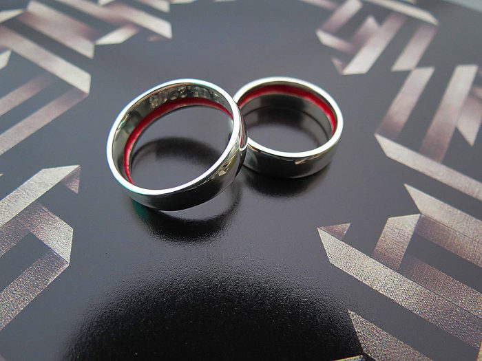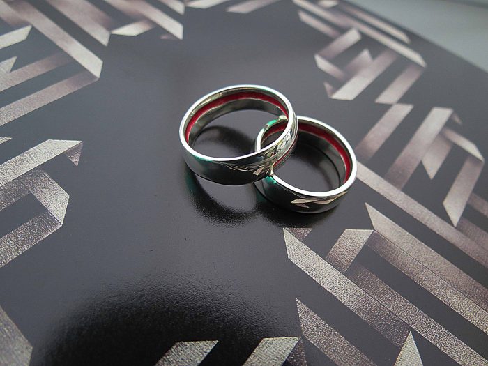 Par de argollas elaboradas plata ley 950 macizas, con canal interno decorado con resina horneada y grabado personalizado interno. Tamaño: 6 a 7mm de ancho aprox.