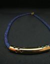 Collar de 40cm de tejido con mostacilla miyuki de color, adornado con 1 dije cilíndrico vertical de 5cm en bronce con baño en oro 24k. Decorado con pequeñas lineas grabadas.