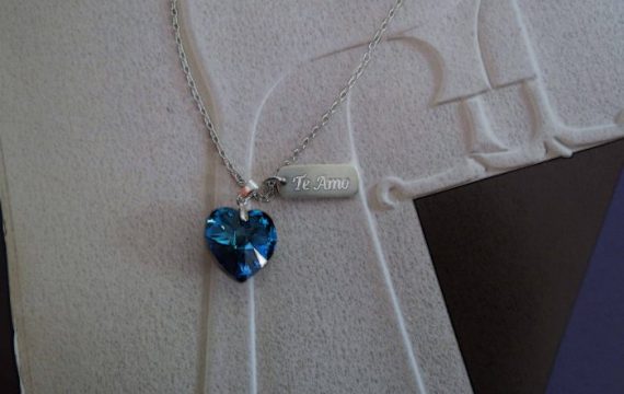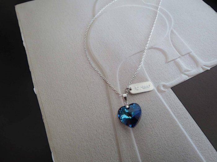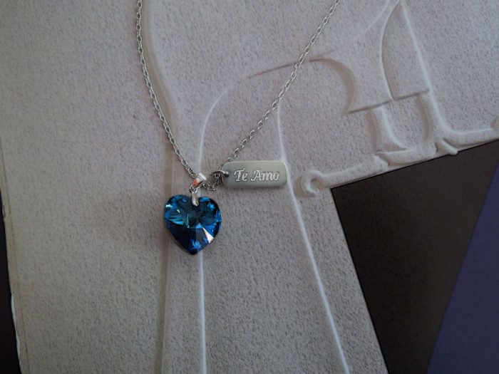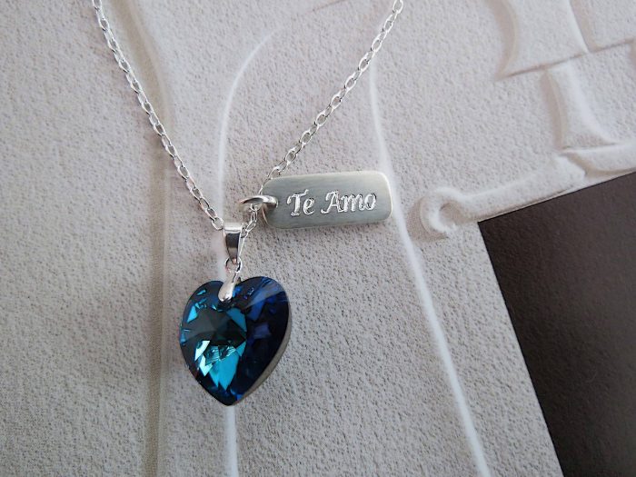Dije Cristal Swarovski de 14mm, adornado con una delicada placa en plata ley 950 personalizada con una pequeña frase, con cadena de 45cm aprox.
