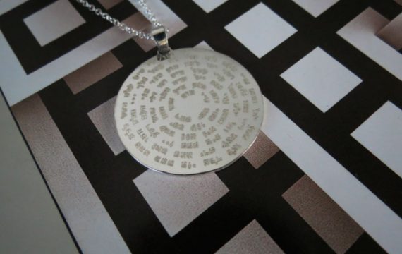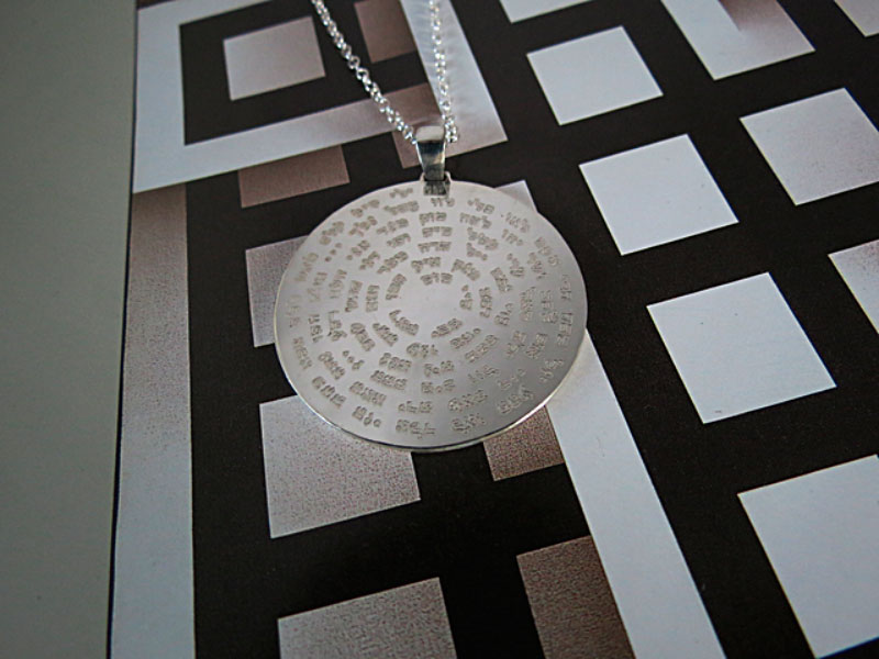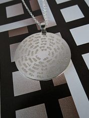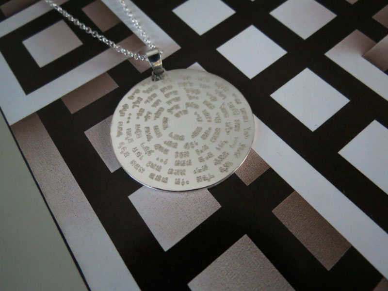 Dije macizo en plata ley 950 con grabado personalizado por ambas caras, con pasacadena y cadena en plata de 45cm. Tamaño: 35mm de diámetro aprox.
