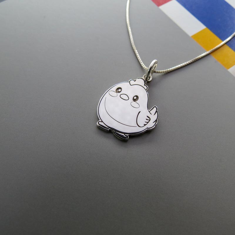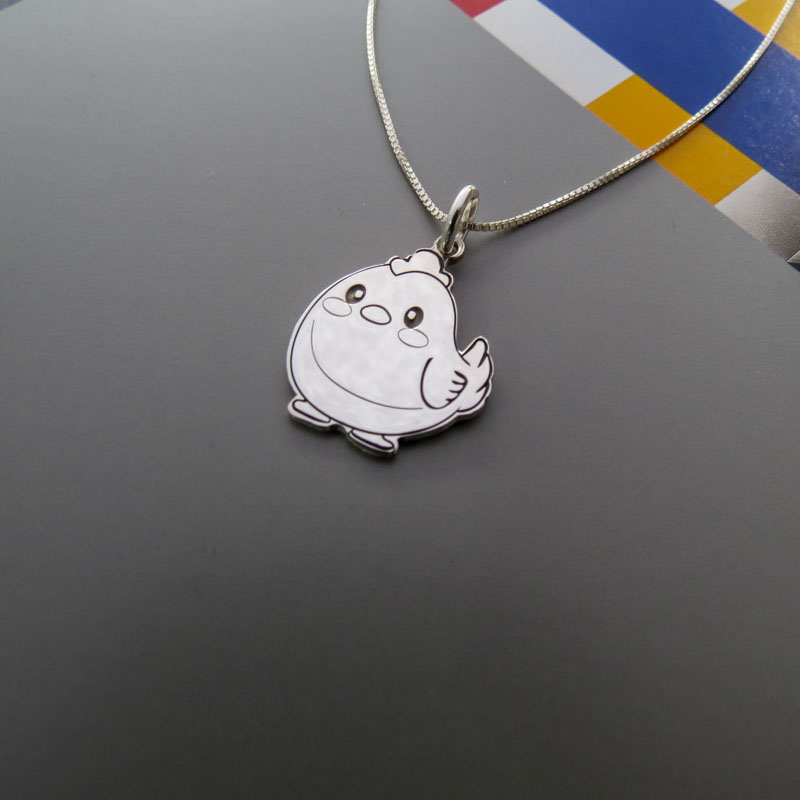 Dije macizo en plata ley 950 con diseño personalizado grabado y silueteado de 15 a 20mm de alto aprox., argolla pasacadena y cadena en plata de 45cm.